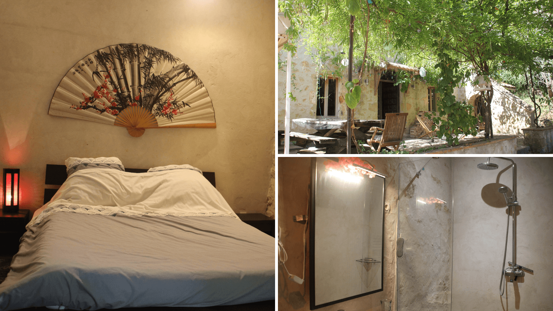 We’re Kala and Midou, and we’ll welcome you with open arms to our little corner of paradise, full of good vibes and authenticity. We’re passionate about nature, of course, but also about meeting new people, all forms of art, herbalism (that’s Kala), and deep philosophical conversations (that’s Midou).
